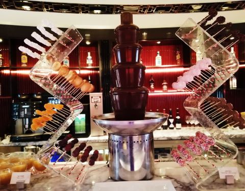 到金茂见一个朋友,她跟我约了晚间甜品自助餐,不同于别家店的是,时间设在晚上18点半到22点,住在这里的客人如果在君悦别的餐厅吃过饭过来的话只要98一位,其他客人是128,其实也很划算啦。 提拉米苏做的很赞,冰淇淋这边品质很香醇,口味多而且搭配的小装饰也很美,还有一个新鲜的水果区域,晚上有弹唱表演,逼格还是很高的啦,这个价格很美丽了。