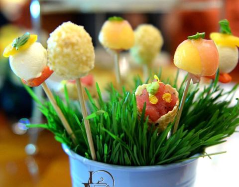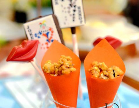 春天来了,大家的心情都特别好,小伙伴们有空就约约约,这个礼拜我们选在了金茂56层的天庭,天庭的下午茶是套餐形式的,据说每期都有不同的创意,也是让人很期待的。 这一期的主题是爱丽丝梦游仙境的疯帽子,看桌上铺的餐垫、菜单,再抬头看看整个环境,直入云端的天顶,还真有那么点兴奋。 窝在舒适的大沙发里等~只听服务生帅哥说,请先喝杯“魔幻药水”,吱溜入口,酸酸的清爽的~ 这次的双人下午茶套餐里有一个三层的点心水果盘、一盒绿色调如花园般的咸点、一盘如盆栽般的各色棒棒小球、焦糖爆米花巧克力唇印和咖啡、红茶组成。 三层盘的上层是五彩缤纷的水果,下层是经典司康饼配奶油草莓酱,中间那层可精致了,有做成钟表状的马卡龙,马卡龙我最爱了,她们不忍下口统统被我下肚里了,嘿嘿!骰子提拉米苏巧克力、破壳小鸟般的芒果巧克力、插着针管的柚子慕斯绿茶曲奇酥等等都是可爱至极,让我纠结啊~美味还是得消灭,好吃。 吃了甜的来点咸的,法式咸塔最最赞了,菠菜、山羊芝士、蘑菇和松茸每样都好好吃。还有水牛马苏里拉芝士棒、酥脆鹌鹑蛋、蟹肉、豌豆、三文鱼籽、金枪鱼塔塔等等都好棒哎~ 这一套下来内容丰富、量足,惊喜连连,感觉也一起投入了啦~哈哈哈,这个下午大家很嗨啊~