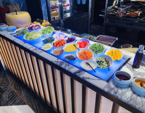 自助餐,环境不错,服务员很温和,风景好,因为落地窗,视线很好,适合朋友小聚,氛围不错,下次再来,是一个好地方值得推荐,有朋友聚会的可以订这家,主要服务很好,希望该餐厅继续保持下去,再接再厉