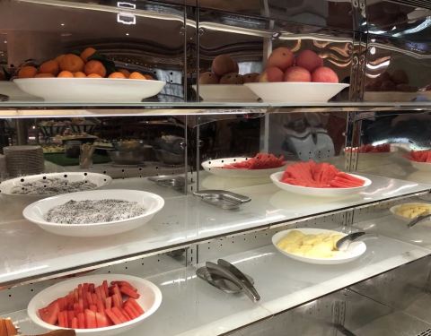 - 早餐有冷碟、热菜、粥面、西式华夫饼、面包西点、水果酸奶等,最近因为入住的印度人多了,又增加了些印度餐