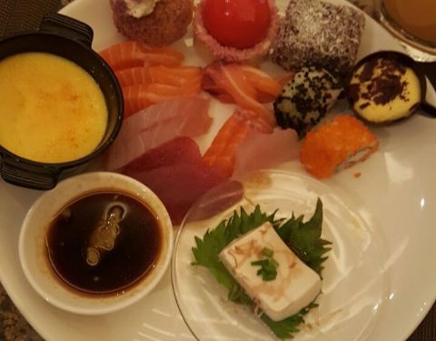 不愧是五星级酒店,食物品种多样化,新鲜且美味可口,服务员一直为客人换餐具和收治桌子,让你在干净整洁,和舒适的环境享受美食。