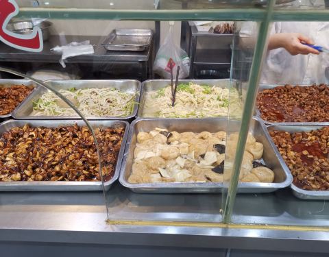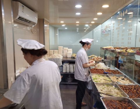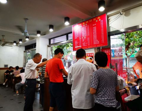 在石泉路上靠近汉阴路,国营饮食店样子,里面面条、盒饭、小笼、锅贴等大众快餐均有。锅贴应该比较有名,有许多人来外卖带走。排队的人也最多。 东西都要自己自取。各客人应非常习惯这种模式,纷纷吃好就走。锅贴...