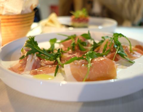 衡山路上一家沿街的意大利餐厅,环境有种意大利乡村风格,很朴素。一楼是酒吧,用餐上了二楼。 「餐前面包」的口味就很惊喜,不喜面包的我差不多把一小篮薄饼和面包全吃了,是刚烤出来的松松脆脆的口感好棒。 168的套餐选了「三文鱼温泉蛋配鱼子」和「智力和牛切片牛排」,另外点了100克「帕尔玛火腿配蜜瓜」和「意大利面」。意面很特别,是宽宽的面皮包裹里小海鲜烤制而成,一口下去满口芝士的纯厚和海鲜的鲜香。 唯一的问题是要求5分熟的牛排,偏咸略老。 衡山路上人均250块,这样的口味性价比不错。