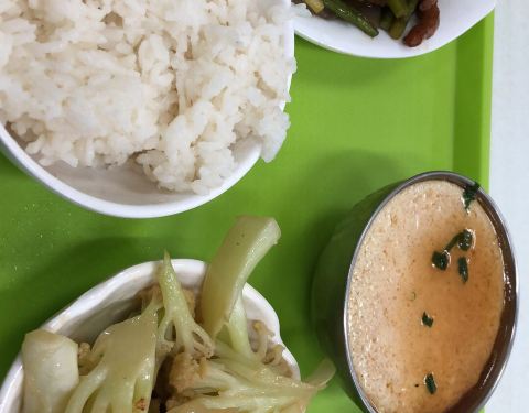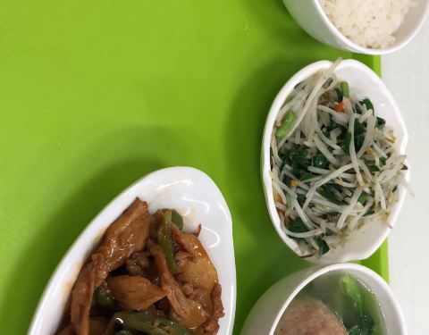 饭点学生很多!大学食堂的价格绝对一大优势,就是菜量少了点!胃口小的应该够了