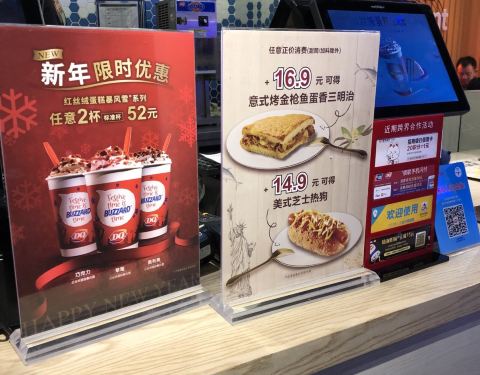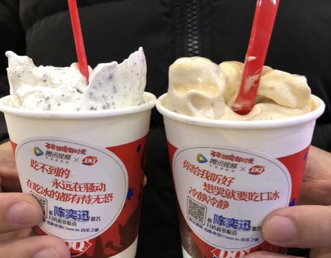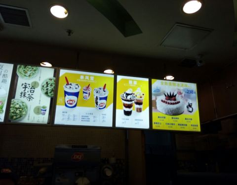 工作日晚上的五角场真是人少,双休日门庭若市的DQ,不!用!排!队!点单、核销、出品都很快,并且味道那么多年都保持口味一致,大赞! 最近新品是中国风,“茶”口味系列的冰激淋,很不错哦!