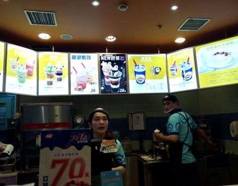 某人的挚爱 -- -- DQ,去过各个分店了,被附近黄兴路大润发的DQ店伤了感情,就只能来这儿吃了。 买的人不能算多也不能算少吧,毕竟天气凉了,买冷饮的人很多很多就奇怪了。 我去旁边点单买了个奶茶这边刚刚做好...