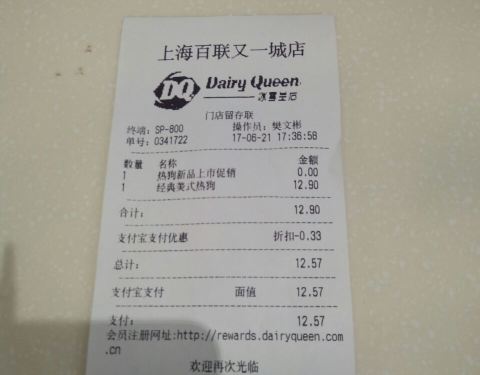DQ居然有热狗了,真是不可思议。 一直都是在DQ买暴风雪系列的我,这次也是被热狗给诱惑了。 样品就让人蛮有食欲了,拍照的时候服务员盯的那叫一个紧,安心啦我还没有饿到抢样品吃的地步。 出品动作很...DQ居然有热狗了,真是不可思议。 一直都是在DQ买暴风雪系列的我,这次也是被热狗给诱惑了。 样品就让人蛮有食欲了,拍照的时候服务员盯的那叫一个紧,安心啦我还没有饿到抢样品吃的地步。 出品动作很快,打包带去看电影的时候吃了。