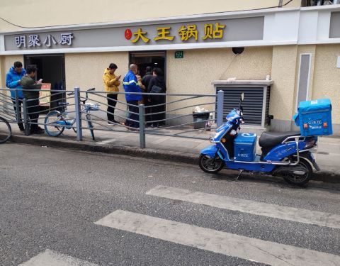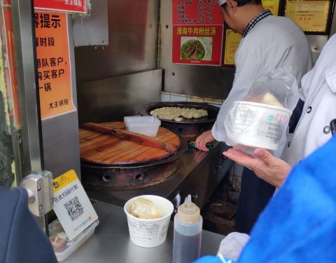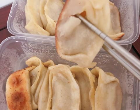 公司附近的一个锅贴大王店铺。寻找小时候的口感。