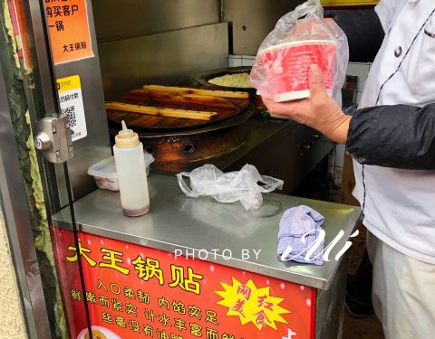 元旦这天来的,那时候还没调价呢~ 大王锅贴虽然有好多家分店,但是只认准这家,每次都特地来吃。 大王锅贴个头不大,外皮口感比较柔软,入口咀嚼比较舒适,锅贴底也是刚好的略焦,有焦香但又不会很硬。里面汤汁饱满,富有肉香。属于便宜又好吃的锅贴。