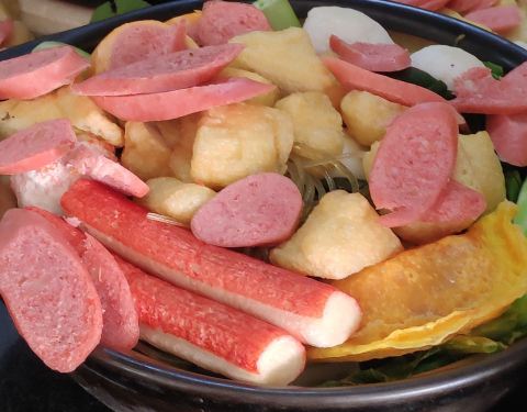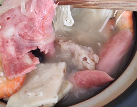学校食堂就是便宜,供应的店家也非常多,小吃快餐都有,十几元一份吃得很好了,估计是有补贴的吧。二楼相对人少些?点了个海鲜煲,满满一大碗,有虾、鱼饼、火腿肠、金针菇、蔬菜等等,居然才13元。当学生真开心。