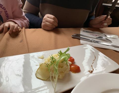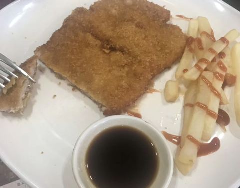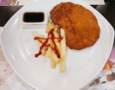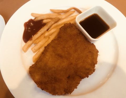 ...味道浓郁,还有色拉是那种土豆色拉好吃,还有必点的猪排,又大又厚配上薯条很好吃,最后再来①杯咖啡