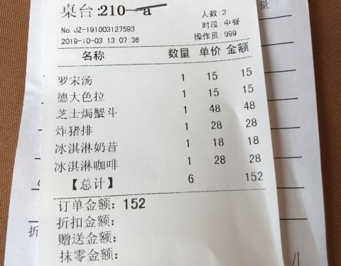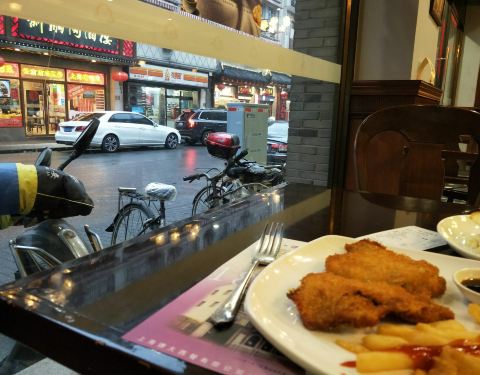 除了牛排不太好吃,其他都还行吧,罗宋汤和葡国鸡味道蛮好的蛮适合我们的口味。环境不错有老上海西餐厅的感觉,服务员态度蛮好的。