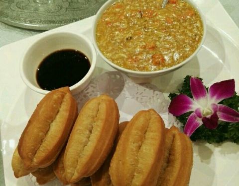 在酒店的三楼,环境还是非常的不错的,气势挺磅礴的,感觉在这里请人吃饭绝对的不失体面! 他们家的现拆河蟹粉油条,雪菜肉丝笋丝毛豆,和海鲜泡饭这三样是最深得我心,尤其是雪菜肉丝笋丝毛豆,很久很久没有吃到这么好吃的了,入口也不是很咸,鲜鲜的,还带有一丝丝的甜。现拆河蟹粉油条这道菜可是要废功夫的了,如果去的晚一些的话,就没有了哦!海鲜泡饭里面的食材品种丰富,质量上乘,入口鲜美的不得了,不知不觉就三碗入肚了!