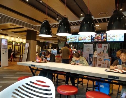 环境: 整个空间较大。大润发一层,可直通超市,里面有无线网,需用手机验证,网速不错。 服务: 人多,在收银台需排队等待,好在座位多。收拾台面比较迅速,收拾得干净。
