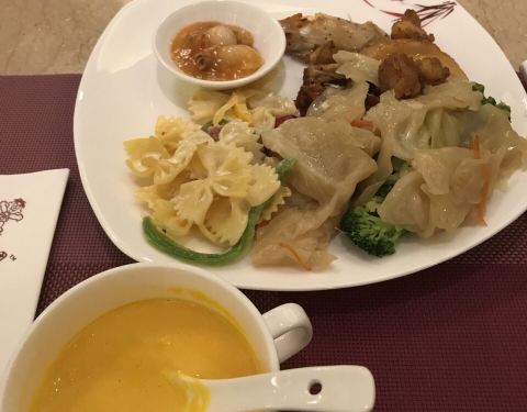 狗年入住旺旺旺大酒店,希望这一年好运气。酒店设施比较老,一般,重点是说餐饮,午餐晚餐极其丰盛,有中餐,西餐,日料理,水果冷盘,蔬菜沙拉,甜点等,晚餐还可以吃小火锅,琳琅满目,让人无从下手,只恨自己一个胃不够用。早餐也很丰富,但是风格可惜不符合我口味。服务态度很好,服务员穿梭其中,收拾残盘,这样照顾了客人面子。但是价格不菲呢。