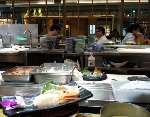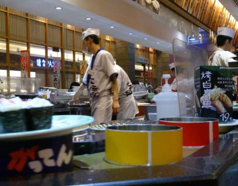 - ...有单人或双人套餐,然回转寿司的正确打开方式当然是要坐在回转台边看着美食排着队向你走来等你翻牌子