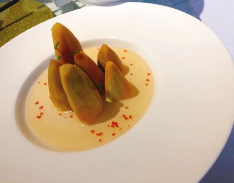 吃过几次圆苑都是在陆家嘴,徐家汇这家还真的是第一次吃,据说这里刚刚装修没多久,所以一进来感觉这里装饰豪华而且很干净。服务说实话,的确属于上海本帮菜餐厅中相当好的,从进门到出门,每一个细节都做得非常棒。服务员很多,无论哪个层面的都一直对客人很细心,店长也特别好,看我回头找服务员,立马亲子过来询问需要什么帮助,上茶、换碟、检查未上餐点,每一个动作都让我感觉这里的服务高端。38元一份,一份简单的马兰头被摆盘精致地送上桌,周围用果仁加以点缀,入口清爽适口。两面黄是本地人爱吃的一道,其实就是方便面的做法,上面洒上浇头,下面的汁水让底部原版脆脆的方便面变软,这个时候翻个身,就是我最喜欢的吃法了。咸菜、牡蛎和蛋的结合比我想象中的好很多,整个蛋饼一点不咸,而且还可以搭配两种不同的酱料,甚至还配上了很小的半颗青柠,给客人多种口感的体验。菠萝古老肉是在半个菠萝中呈现上桌的,肉感正好,菠萝酸酸甜甜,配上稍许不辣的红色辣椒,是我这餐中最喜欢的一道。餐后甜点还有冰糕和稍许水果,整体的感觉还是非常不错的,很适合家庭或公司聚餐。