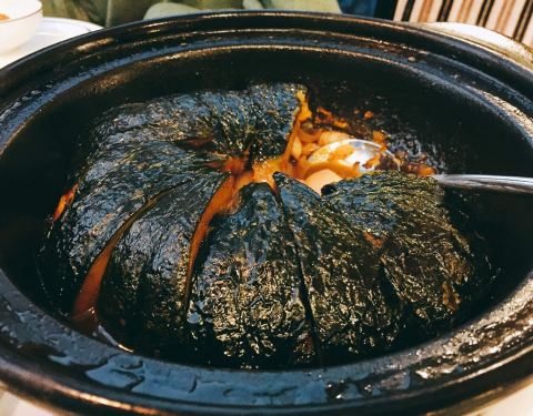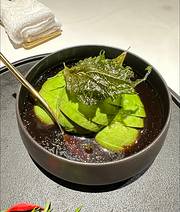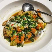 仔蟹应该是海蟹,它肉不像湖蟹那样带着甜鲜。我猜盐焗用的盐可能大概或许是玫瑰盐,因为我似乎在花椒的香气中吃到一丝 玫瑰味又或者是荔枝味,总之是很丰富的口感,不同于单纯的食盐焗。我在想如果换成青蟹应该更肥美吃起来更爽。