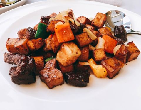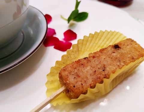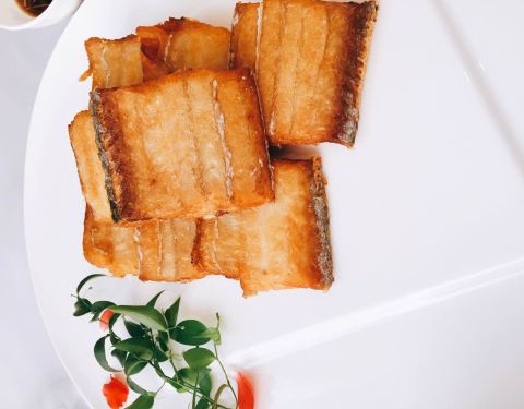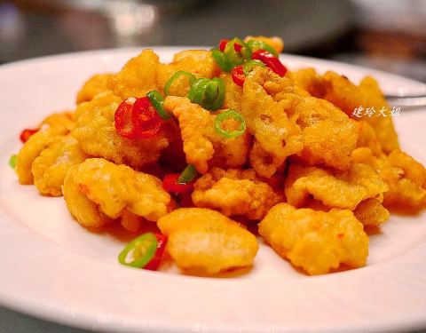 好像是这个名字,龙头考就是九肚鱼,我们上海人管它叫龙头考,一般来讲椒盐九肚鱼这样的吃法多一些,通常茶餐厅都有。这家创新在九肚鱼下面垫了一层芒果,再裹上炸粉炸的酥酥脆脆的,所以一口下去同时集合了脆、嫩、香甜的复合口感,有点惊艳。