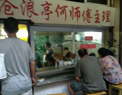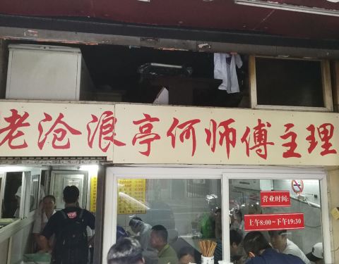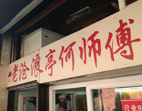店是沧浪亭的何师傅主理的。 原以为是位男师傅,哪想到看见的是位瘦小的女师傅。 她一个人够忙,不但要下面加浇头,还要收钱。这个卫生嘛,就睁一只眼闭一只眼了。 店面同这附近几条路上的小面馆一样,很小。位...