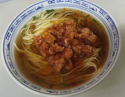 ...,沧浪亭我知道,中华老字号的面馆,想着这里应该也不错,来了一碗葱油肉丝面,果然没失望,味道很赞