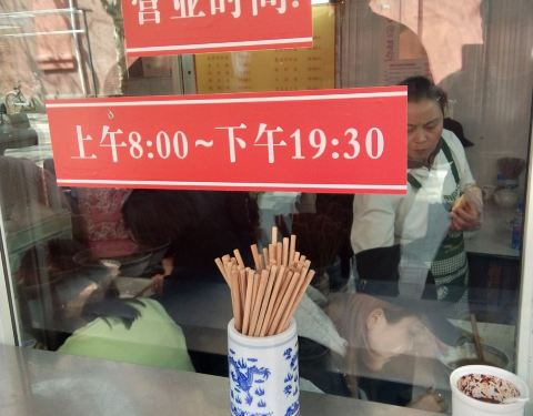 开门了,生意很好。他们家的炸猪排是非常有名的。还有就是咸菜肉丝面也不错