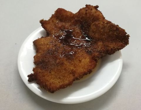 店是沧浪亭的何师傅主理的。 原以为是位男师傅,哪想到看见的是位瘦小的女师傅。 她一个人够忙,不但要下面加浇头,还要收钱。这个卫生嘛,就睁一只眼闭一只眼了。 店面同这附近几条路上的小面馆一样,很小。位于老房子里。 外面摆着一张桌子。 下几级台阶到店里面,也就四张桌子,还挤挤的。 开着窗户通风,里面有风扇,可这不大热的天也很热。 好在收拾得还算干净。 门左手门是不大的操作间,一边叠着一摞猪排。 一个阿姨负责炸猪排,见我拍照,很配合地特地停顿了一下。 另一个老头负责端面收拾桌子。还有一个阿姨洗碗。 共四个人工作,态度都很温和友好,不像有些小店很拽。 先找何师傅点了面,交了钱。 特地去得早一点,有位子坐。不过,面上得很快,大家也吃得快,所以翻台挺快的。 到十一点半后人就多了。 黄鱼鱼片面: 碗不讲究,一般的蓝瓷碗,不算大。 面条是细的碱面,韧劲不错,只是久了,有一些发粘,不够筋道。 汤是清汤。 黄鱼切成片用油现炸好,大概八小片。肉质很嫩滑,稍有点腥味。 鱼泡在面里后,味道慢慢渗入面中,面条的味道由淡变得鲜了一些。 与阿娘面相比,味道不够浓郁。 炸猪排: 猪排是现炸,浇了一点辣酱油。 猪排一大片,不厚。外皮金黄,上面的粉较少。皮很是酥脆,肉较为嫩。很好吃。 总体感觉性价比不错。