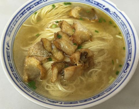 绝不可错过的传统面馆,请忽略店内环境。点一碗爆鱼面就能试出店家手艺如何。爆鱼的调味相当到位,甜中带鲜。炸猪排更是保留节目。必点。