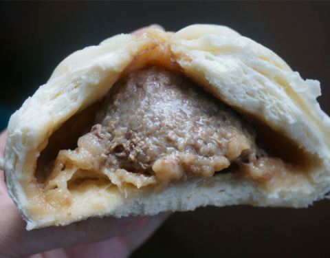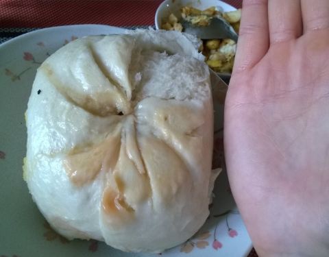 已经是第N次买他们家的肉包子了,第一次吃过便爱上了,个头够大而且肉馅带着甜味。 其实也很喜欢他们家的咸蛋黄鸡肉包,不过就买到过一次,之后过去都是只有肉包,桑心。