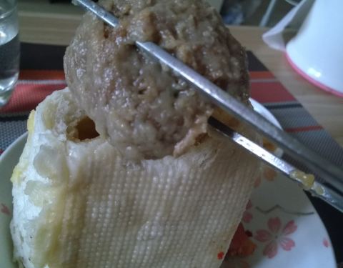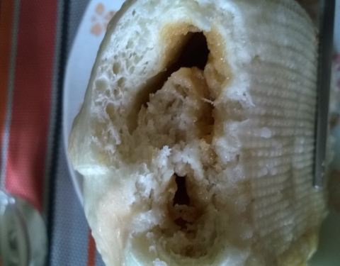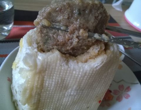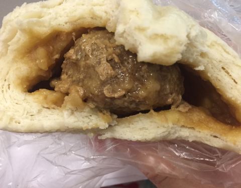 刚吃的时候觉得很好吃,不过一个下去,觉得有点腻。肉馅还不错,甜甜还能有汁水。第二天我微波炉转