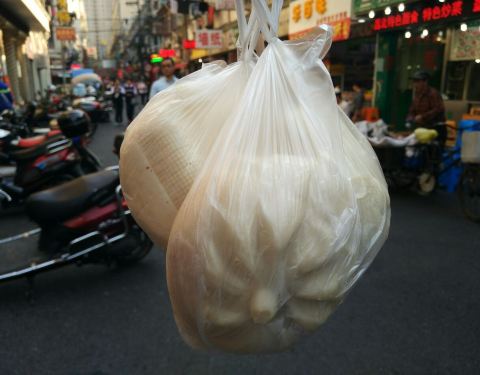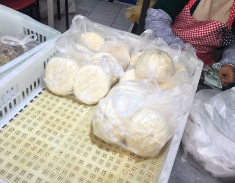 看了一些媒体的报道,这个号称上海第一的大肉包,一直长草。特地选了一天去买,在贵州路,门面开在里面的,不大。包子都已经装好,放在食品筐里,两个一袋。下午去的,只剩肉包了,个头满大的,买了八个拎在手里...