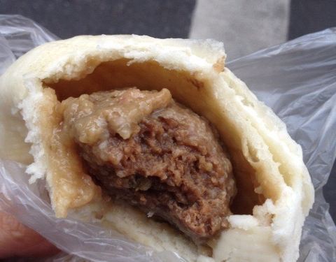 头一天晚上路过,看到牌子好厉害的样子,回来又查了点评还真是很厉害哈哈,第二天早上就跑来排队了~ 足足排了半个多小时,其实人不多,前面也就10来个人,但是大家都一下子十几个几十个的买,一屉包子经常2人就给买光了,本来想有几种感兴趣的馅一样一个都买了尝尝,有个阿姨特热心,好一顿劝我,就买肉的,她家就肉的好吃,她们都吃了10多年了不会错的,好吧,最后只买了2个肉的~ 老大个儿的一个肉包子,光是里面的肉馅球就足有别家整个包子大了,微甜多汁,真的很好味^_^包子皮也因为沾了肉汁变得有味道,这么大个这么好吃的大包子居然只要2.5太超值!