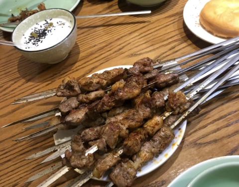 他们家的生意太好了,一整层楼都是他们家,一共有三层,工作日的晚上都人山人海,去得晚的话两个人的座位还需要拼桌。手抓羊肉和羊肉串都不错,只是从一楼端到三楼,感觉都有点凉了。