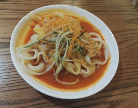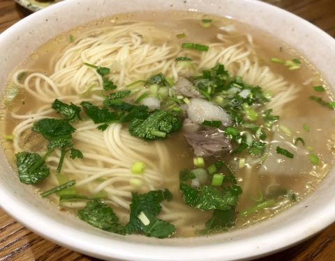 - 超级嫩,如果不是连在骨头上,还以为是鸡肉呢… 回民粉汤,鸡汤做底,好吃