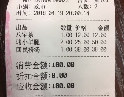 两个号称要减肥的人,吃完塞佰弄不算,再来这里补一顿… 八宝茶,用料很足,食材不错,口感也挺好,可以一直泡呢!带了一份回家,里面的菠萝好好吃! 烤小羊腿,其实就是羊棒骨,肉好多啊!超级嫩,如果不是连在...两个号称要减肥的人,吃完塞佰弄不算,再来这里补一顿… 八宝茶,用料很足,食材不错,口感也挺好,可以一直泡呢!带了一份回家,里面的菠萝好好吃! 烤小羊腿,其实就是羊棒骨,肉好多啊!超级嫩,如果不是连在骨头上,还以为是鸡肉呢… 回民粉汤,鸡汤做底,好吃!虽然肚皮已经饱饱,还是忍不住多吃了几碗… 很超值,口味也不错,下次继续!