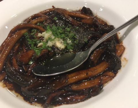 从B1直通久光八樓至餐饮区的电梯非常慢,能够乘上算运气好。急起来干脆换其它电梯至二楼再转。店堂算小的,但收拾得很干净。菜品本邦特色,体量不大,光盘主义。本人喜欢吃肉,该店红烧肉一例78元,和着酱蛋、百叶结一起烧,滋味真的美极了。响油鳝蝴入口也好,最好弄点白饭,淋上那汁一拌,也是很舒服。其他各菜见仁见智,中规中矩。