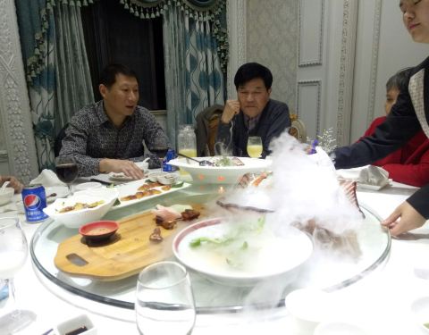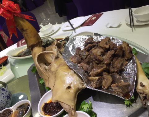 朋友宴请,放在了沪华大酒店,包房环境不错,菜式也不错,口味上还是很喜欢的本帮菜。 冷菜最喜欢上海熏鱼,外脆里香,口感偏甜,很地道!烤鸭也很不错,不油不腻,皮脆肉嫩!草虾很新鲜也很大个,肉质很有弹性!还有个牛气冲天很霸气的牛骨造型,吸引眼球!