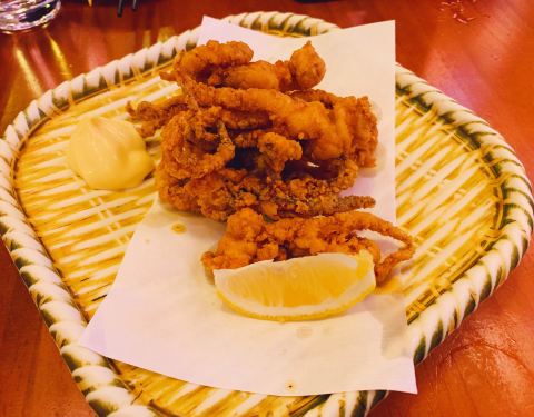因为我的前半生拍摄地,所以火了么?排队半小时,可能因为店面比较小,不过环境倒是挺日本的,几个老外在这狂拍。点了刺身,炸鸡块,各种烤串,蛋包饭,芥末章鱼,喝了沙瓦。味道还好,但也没有特别惊艳,上海好吃的太多了。比较能记住的是蛋包饭