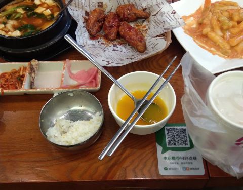 昨天去尝试了不一样的菜,韩礼年糕。 每个都好吃。 之前点的鸡块像鸡米花,没有味道又不好吃肉柴,这次的是中翅和翅根,甜甜的又嫩。 海鲜汤里面好多海鲜,吃的满足,热热的汤,配上饭,泡一泡吃更完...