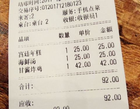 小伙伴家门口的一家饭店。 价格涨了几倍了,可以可以的,量还是就那一点点。 年糕一直那个水平,但是有时候多两条有时候少两条。 海鲜汤还可以,碗比较小。