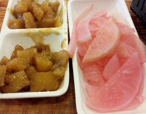 看看单价便宜但是实际算下来不便宜的,海带汤一如既往的难喝,还是南瓜粥好喝一点,酱萝卜也还不错,...