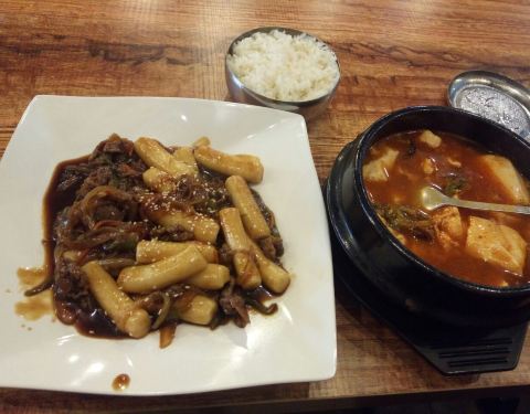 这家店我应该已经不止一次点评过了,每次去吃都能点出新的好吃的菜品。可能马上要搬家了,我最近又把这附近好吃的店都撸了一把。这次我点了铁板豆腐,非常好吃,韩式酱撒在卤水豆腐上,铁板看出来味道不是一般的好。另外推荐鱿鱼蛋包饭,颜值不错,鱿鱼也很入味。有机会还是要再来吃。