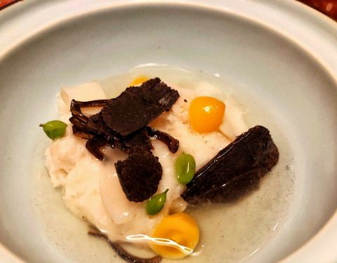 主厨在日本学习料理十几年,点了398套餐,超赞 前菜道道精致,鱼子酱海胆鲍鱼 特别选用西伯利亚鱼子酱搭配鲜甜海胆以及鲍鱼,佐上蟹醋冻,不能有颜值而且入口口味非常复合,开胃啦 海鲜蛋卷筒 上好的金枪鱼才能被称为黑鲔鱼,他家均采用黑鲔鱼,这道海鲜蛋筒摆盘颜值满满,黑鲔鱼泥加入飞鱼籽,甜虾鱿鱼,口味上就是带你进入海洋世界了,搭配脆甜可口蛋卷,口感更丰富。 最后道前菜平目刺身 摆盘自然不用多说,但吐槽一下比目鱼刺身口感上有Q弹劲道但口感上有点筋筋拉拉,口味上也有点寡淡,最好是换一种鱼生也许会更好。 品位完前菜,接下来粉墨登场的自然就是各种热菜料理啦 北海道大干贝 大干贝,比大拇指还厚实哦,煎的超嫩,搭配风干牛肝菌和新鲜无花果,感觉海苔都包不起来呢 终于到了最期待的江户前握寿司环节,拥有15年日本当地料理经验的料理长亲自出场,一片鱼生一点现磨芥末一握饭团,师傅弹指一挥间大小均匀的手握就完成了。 主推当然是黑鲔鱼大腹,说实话一直对金枪鱼感觉一般,哪怕是最好的蓝鳍金枪鱼也没觉得比三文鱼好吃,但吃完他家的的黑鲔大腹,那种肥而不腻又入口即化的口感,不禁怀疑之前自己大概吃的是假蓝鳍了。 海胆军舰,海胆比饭还多,够可以的。海胆的味道就是哪怕一餐里有2份,哪怕再多也不嫌多呢… 最后收尾黑鲔鱼手握,虽然没有大腹那么惊艳但也非常好吃,好饱… 最后主食甜品也是完美收官,店家考虑到之前我们都已经吃了很多生食,特意把主食换成了鳗鱼饭,贴心(其实CC就喜欢吃鳗鱼饭)小小的一碗量正好,倒是鳗鱼可不小哦,选取了最好的中间段,现烤的鳗鱼肉质鲜嫩,酱汁的味道也恰到好处,先单吃,再拌饭会有不同感觉哦。 白桃布丁,新鲜白桃配上自家做的芝麻脆饼,小芋圆点缀,香草布丁打底。一扇子下去口味上非常丰满,尤其是白桃的酸甜和香草籽的结合很赞。 京都风葛粉 日料的精致和创意在这里体现无疑。把葛根粉做成粉条状冻在冰水里,吃的时候夹一筷子蘸着黑糖,入口滑溜滑溜不要的,有意思又好吃哦!