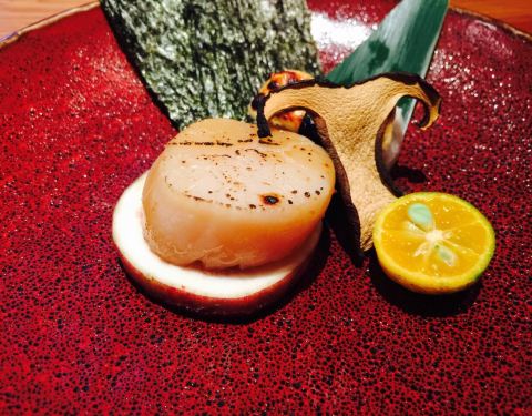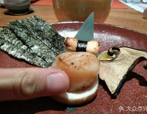- 【北海道大干贝】海苔包裹大干贝,趁热吃下,肉质肥厚口感味道都非常好。新一季菜单推出,品尝一下。推荐