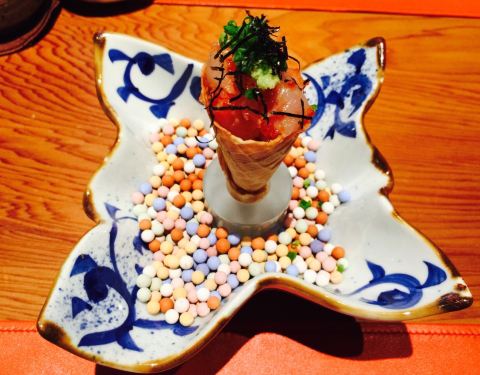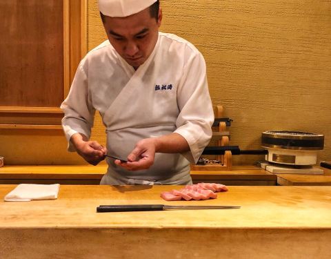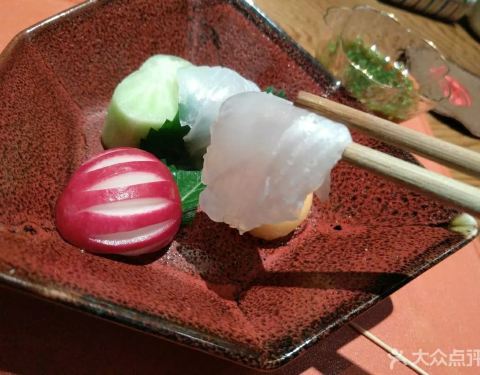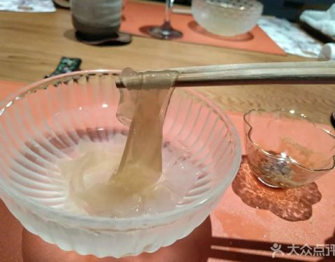 主厨在日本学习料理十几年,点了398套餐,超赞 前菜道道精致,鱼子酱海胆鲍鱼 特别选用西伯利亚鱼子酱搭配鲜甜海胆以及鲍鱼,佐上蟹醋冻,不能有颜值而且入口口味非常复合,开胃啦 海鲜蛋卷筒 上好的金枪鱼才能被...主厨在日本学习料理十几年,点了398套餐,超赞 前菜道道精致,鱼子酱海胆鲍鱼 特别选用西伯利亚鱼子酱搭配鲜甜海胆以及鲍鱼,佐上蟹醋冻,不能有颜值而且入口口味非常复合,开胃啦 海鲜蛋卷筒 上好的金枪鱼才能被称为黑鲔鱼,他家均采用黑鲔鱼,这道海鲜蛋筒摆盘颜值满满,黑鲔鱼泥加入飞鱼籽,甜虾鱿鱼,口味上就是带你进入海洋世界了,搭配脆甜可口蛋卷,口感更丰富。 最后道前菜平目刺身 摆盘自然不用多说,但吐槽一下比目鱼刺身口感上有Q弹劲道但口感上有点筋筋拉拉,口味上也有点寡淡,最好是换一种鱼生也许会更好。 品位完前菜,接下来粉墨登场的自然就是各种热菜料理啦 北海道大干贝 大干贝,比大拇指还厚实哦,煎的超嫩,搭配风干牛肝菌和新鲜无花果,感觉海苔都包不起来呢 终于到了最期待的江户前握寿司环节,拥有15年日本当地料理经验的料理长亲自出场,一片鱼生一点现磨芥末一握饭团,师傅弹指一挥间大小均匀的手握就完成了。 主推当然是黑鲔鱼大腹,说实话一直对金枪鱼感觉一般,哪怕是最好的蓝鳍金枪鱼也没觉得比三文鱼好吃,但吃完他家的的黑鲔大腹,那种肥而不腻又入口即化的口感,不禁怀疑之前自己大概吃的是假蓝鳍了。 海胆军舰,海胆比饭还多,够可以的。海胆的味道就是哪怕一餐里有2份,哪怕再多也不嫌多呢… 最后收尾黑鲔鱼手握,虽然没有大腹那么惊艳但也非常好吃,好饱… 最后主食甜品也是完美收官,店家考虑到之前我们都已经吃了很多生食,特意把主食换成了鳗鱼饭,贴心(其实CC就喜欢吃鳗鱼饭)小小的一碗量正好,倒是鳗鱼可不小哦,选取了最好的中间段,现烤的鳗鱼肉质鲜嫩,酱汁的味道也恰到好处,先单吃,再拌饭会有不同感觉哦。 白桃布丁,新鲜白桃配上自家做的芝麻脆饼,小芋圆点缀,香草布丁打底。一扇子下去口味上非常丰满,尤其是白桃的酸甜和香草籽的结合很赞。 京都风葛粉 日料的精致和创意在这里体现无疑。把葛根粉做成粉条状冻在冰水里,吃的时候夹一筷子蘸着黑糖,入口滑溜滑溜不要的,有意思又好吃哦!