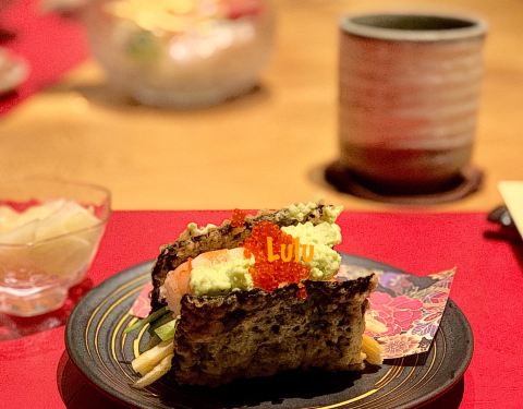 搭配红糖蘸酱一口满足;芋泥的细腻清甜搭配虾蓉的鲜嫩弹劲 很融合 「江户前握寿司四贯」选用日本越光米