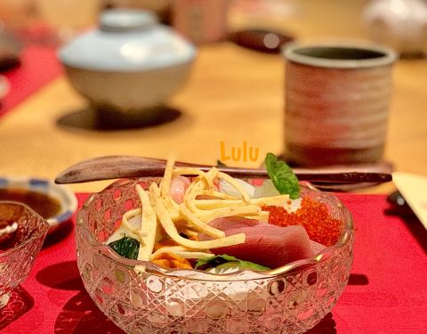2019.04.23 中午,在高级的日料店吃了顿朴素的午餐。说高级是因为要收10[%]的服务费,说朴素是因为点的是相对便宜的套餐和丼。 日本菜像是一块无瑕美玉,透着光亮但却是冰凉,久久握在手中才会慢慢温热开来。 ...2019.04.23 中午,在高级的日料店吃了顿朴素的午餐。说高级是因为要收10[%]的服务费,说朴素是因为点的是相对便宜的套餐和丼。 日本菜像是一块无瑕美玉,透着光亮但却是冰凉,久久握在手中才会慢慢温热开来。 鳗鱼饭套餐 前菜➰新鲜草莓,果酱,鱿鱼片,一尾鲜虾组成的前菜,清爽开胃,果香味甜。鱿鱼嫩口,鲜虾弹牙,非常新鲜。 刺身➰生鱼片四片,鱿鱼一卷,食材新鲜,鲜美回甜,鼻子有些塞住,吃点芥末正好畅通呼吸。 蒸蛋➰蒸得火候刚刚好,很水嫩,有一层石皮将虾仁与蛋隔开,中间的银杏也是软软糯糯的刚好。是处理的精致又可口的一道茶碗蒸。 季节烤物➰上桌一道烤牛肋骨,骨头旁的肉是最鲜美的,刷着咸甜的酱汁,鲜嫩香甜又有嚼劲,很好吃。 鳗鱼饭➰洒满芝麻粒的鳗鱼肥美肉质细嫩,有一些小刺吃起来要小心。整体是偏甜的口感,酱汁丰富,拌开后每粒米都可以沾到酱油汁,甜甜咸咸的,风味上佳。 和风炸年糕➰年糕被裹着香香咸咸的芝士,芝士被裹着炸的脆脆干干的面粉,吃在嘴里软软绵绵还有芝士的撕拉口感,是一道可口的点心。 抹茶布丁➰抹茶较少,基本没有茶味,是顺滑冰凉的布丁。红豆也是软软的,不爱吃抹茶的我也是吃掉了这碗抹茶布丁。 海鲜丼大份 上桌后觉得略小,这碗真的是大份?? 但吃的时候真是被填满了。食材新鲜,海胆鱼籽拌饭,每一口都是惊喜。我喜欢放一些盐渍过的姜片和酱油芥末,整碗拌开,咸鲜无比。 鲜虾牛油果手卷 又单点了一只牛油果手卷,手卷倒是硕大,美中不足外层炸的过老,有些许油耗气。 上菜节奏偏快,略显仓促,饭后有些许口干,包厢初始闷热异常。客观评述四星吧。