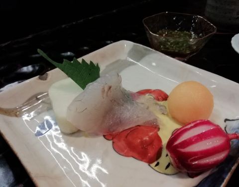 藏匿浦华大酒店内的日本料理 木质掩门 两间包厢 一个吧台 服务员身着制服 彬彬有礼 餐桌上折成衣的餐布、抹茶及热毛巾等...一看就很周到 台湾师傅主理~开启一场春日味蕾之旅 「草莓沙拉」草莓、甜玉米、坚果...藏匿浦华大酒店内的日本料理 木质掩门 两间包厢 一个吧台 服务员身着制服 彬彬有礼 餐桌上折成衣的餐布、抹茶及热毛巾等...一看就很周到 台湾师傅主理~开启一场春日味蕾之旅 「草莓沙拉」草莓、甜玉米、坚果、鱿鱼、蚕豆佐以自制草莓酱 起到酸甜开胃的效果 「海胆榛果豆腐」紫苏叶垫底,墨鱼脆片在上,店家自制榛果豆腐与海胆为舞 佐以小撮芥末 层次丰富 曼妙体验 「日本富士山萤乌贼」蚕豆打制成泥铺底 萤乌贼幼小的身躯淋上了火龙果汁 个人觉得有一丢丢腥 「黑活鲷刺身」有来自爱媛县的活鲷刺身,更偏爱熊本县的黑鲔鱼大腹 粉嫩丰腴 脂肪在口腔慢慢融化 「黑松露海胆黑鳕鱼蒸物」洁白透亮的鲜嫩鳕鱼,融入黑松露&海胆&蚕豆 温和的 不喧宾夺主的 「脆皮蒲烧鳗鱼」酥脆的表层 低温慢烤保留其原汁原味 菠萝片是点睛之笔 提升了味觉 「手工芋泥虾卷」可以称为芋泥虾天妇罗~芋泥的细腻清甜搭配虾蓉的鲜嫩弹劲 很融合 「江户前握寿司四贯」选用日本越光米~分别制作了蜜柑鰤鱼、车虾、海胆军舰及鱼籽军舰 坐拥吧台的好处就是可以近距离欣赏师傅手法;另外搭配的味增汤也收到一众好评,头水紫菜的鲜美尽在这碗汤里 「京都风葛粉&草莓和风卷」有点类似河粉 透明质地 韧劲足~搭配红糖蘸酱一口满足;和风卷也出色的很,蛋糕柔软湿润 奶油细腻清甜 一颗草莓沁人心脾 感受了一场视觉、味觉的双重享受,在甜品中谢幕~