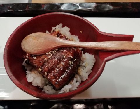 2019.04.23 中午,在高级的日料店吃了顿朴素的午餐。说高级是因为要收10[%]的服务费,说朴素是因为点的是相对便宜的套餐和丼。 日本菜像是一块无瑕美玉,透着光亮但却是冰凉,久久握在手中才会慢慢温热开来。 鳗鱼饭套餐 前菜➰新鲜草莓,果酱,鱿鱼片,一尾鲜虾组成的前菜,清爽开胃,果香味甜。鱿鱼嫩口,鲜虾弹牙,非常新鲜。 刺身➰生鱼片四片,鱿鱼一卷,食材新鲜,鲜美回甜,鼻子有些塞住,吃点芥末正好畅通呼吸。 蒸蛋➰蒸得火候刚刚好,很水嫩,有一层石皮将虾仁与蛋隔开,中间的银杏也是软软糯糯的刚好。是处理的精致又可口的一道茶碗蒸。 季节烤物➰上桌一道烤牛肋骨,骨头旁的肉是最鲜美的,刷着咸甜的酱汁,鲜嫩香甜又有嚼劲,很好吃。 鳗鱼饭➰洒满芝麻粒的鳗鱼肥美肉质细嫩,有一些小刺吃起来要小心。整体是偏甜的口感,酱汁丰富,拌开后每粒米都可以沾到酱油汁,甜甜咸咸的,风味上佳。 和风炸年糕➰年糕被裹着香香咸咸的芝士,芝士被裹着炸的脆脆干干的面粉,吃在嘴里软软绵绵还有芝士的撕拉口感,是一道可口的点心。 抹茶布丁➰抹茶较少,基本没有茶味,是顺滑冰凉的布丁。红豆也是软软的,不爱吃抹茶的我也是吃掉了这碗抹茶布丁。 海鲜丼大份 上桌后觉得略小,这碗真的是大份?? 但吃的时候真是被填满了。食材新鲜,海胆鱼籽拌饭,每一口都是惊喜。我喜欢放一些盐渍过的姜片和酱油芥末,整碗拌开,咸鲜无比。 鲜虾牛油果手卷 又单点了一只牛油果手卷,手卷倒是硕大,美中不足外层炸的过老,有些许油耗气。 上菜节奏偏快,略显仓促,饭后有些许口干,包厢初始闷热异常。客观评述四星吧。
