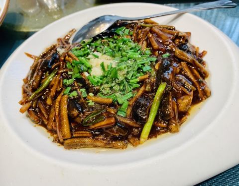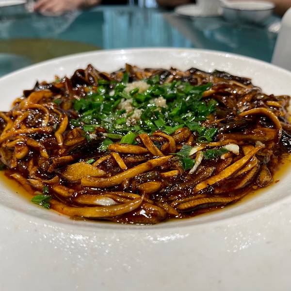 这次的响油鳝丝更令人满意,茭白丝和鳝丝的比例刚合适...国庆长假期间提前定了包房,和家里长辈们聚餐。时不时选择这里的原因是在我们看来,这儿更象一家上海本帮菜馆,比如秘制熏鱼、响油鳝丝、酒酿圆子是必点的。